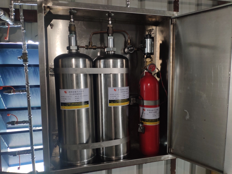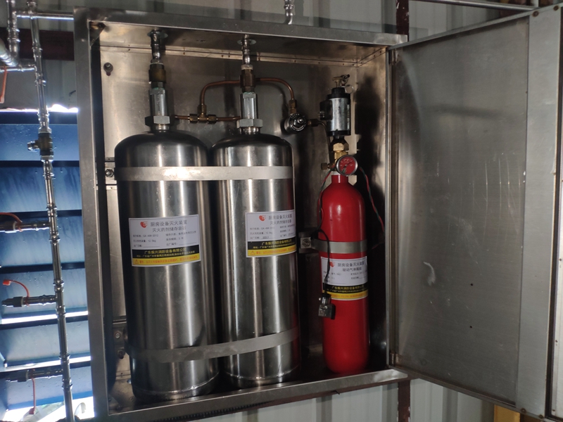 廚房設備滅火裝置是固定安裝于工業廚房、商業廚房及民用廚房等高濕熱環境中,由滅火劑貯存容器組件、驅動氣體貯存容器組件、管路、噴嘴、閥門及其驅動裝置、感溫器、控制裝置、燃氣閥等組成,能在發生火災時自動探測并實施滅火的成套裝置。