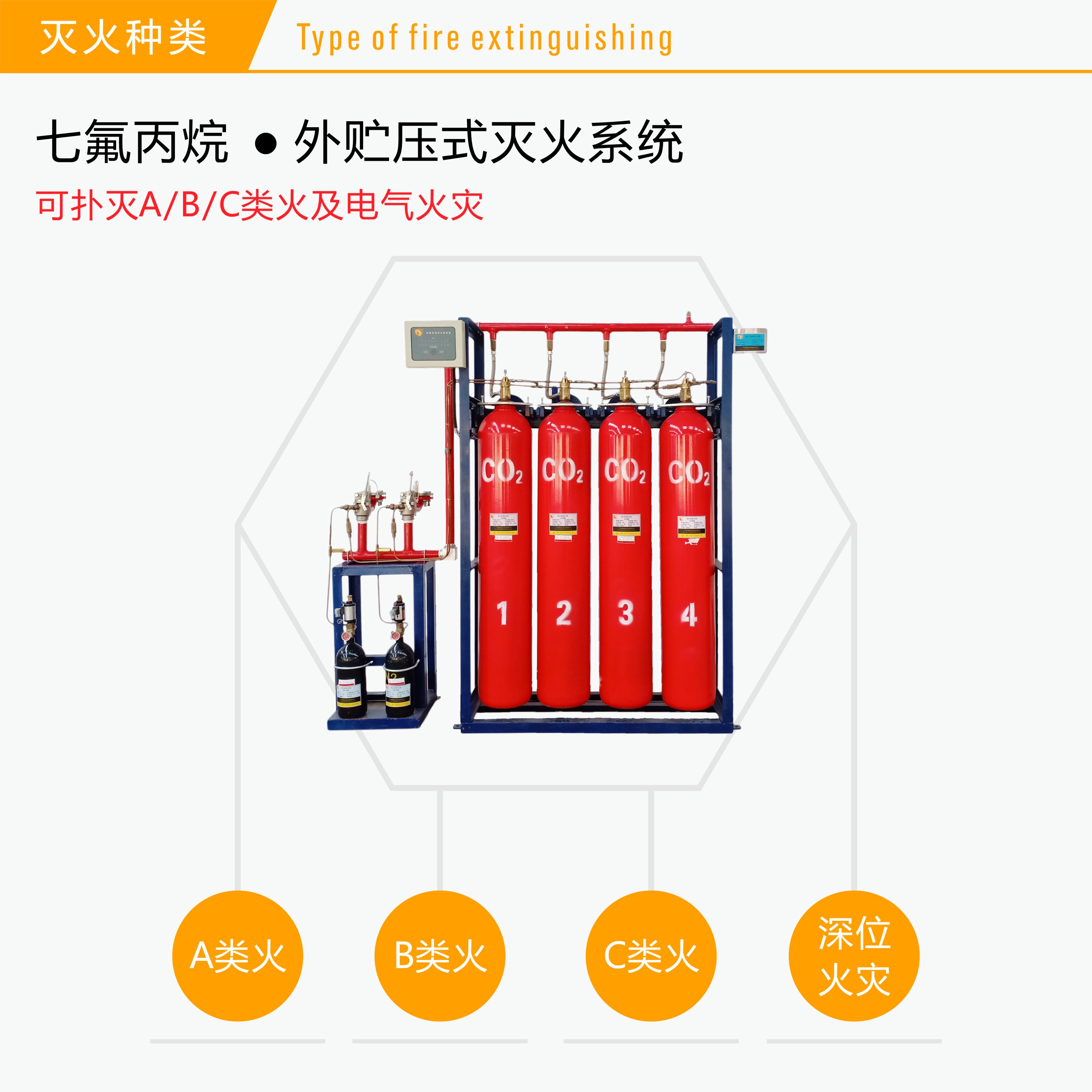 儲存驅動氣體(氮氣),火災發生時,由驅動氣體瓶組釋放氮氣通過驅動氣體管路打開相應的選擇閥和滅火劑瓶組容器閥,釋放滅火劑,實施滅火。